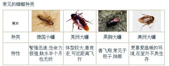 一、蟑螂习性蟑螂是变态性昆虫,已在地球上生活了3.2亿年,是地球上最古老的生物之一。长期生存在:缝、洞、角、堆和有水源、食源、热源的地方;没有食物和水仍能存活一周。